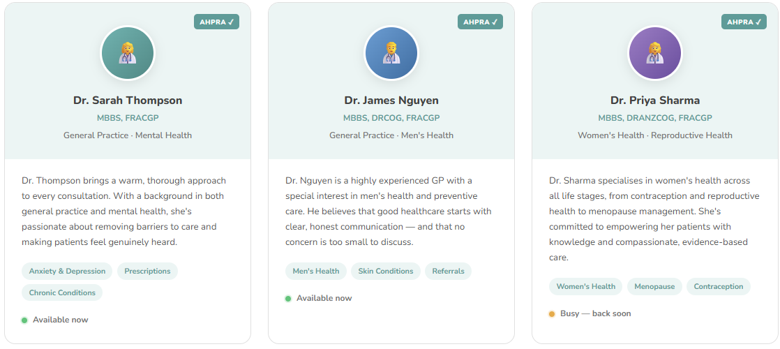 Every doctor verified with the Australian Health Practitioner Regulation Agency